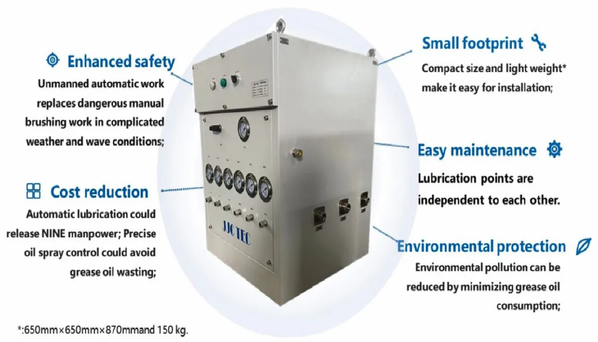 Through precisely control of grease volume, the system greatly reduces the risk of grease leaking into the sea water, reduces oil consumption and is environmental friendly.