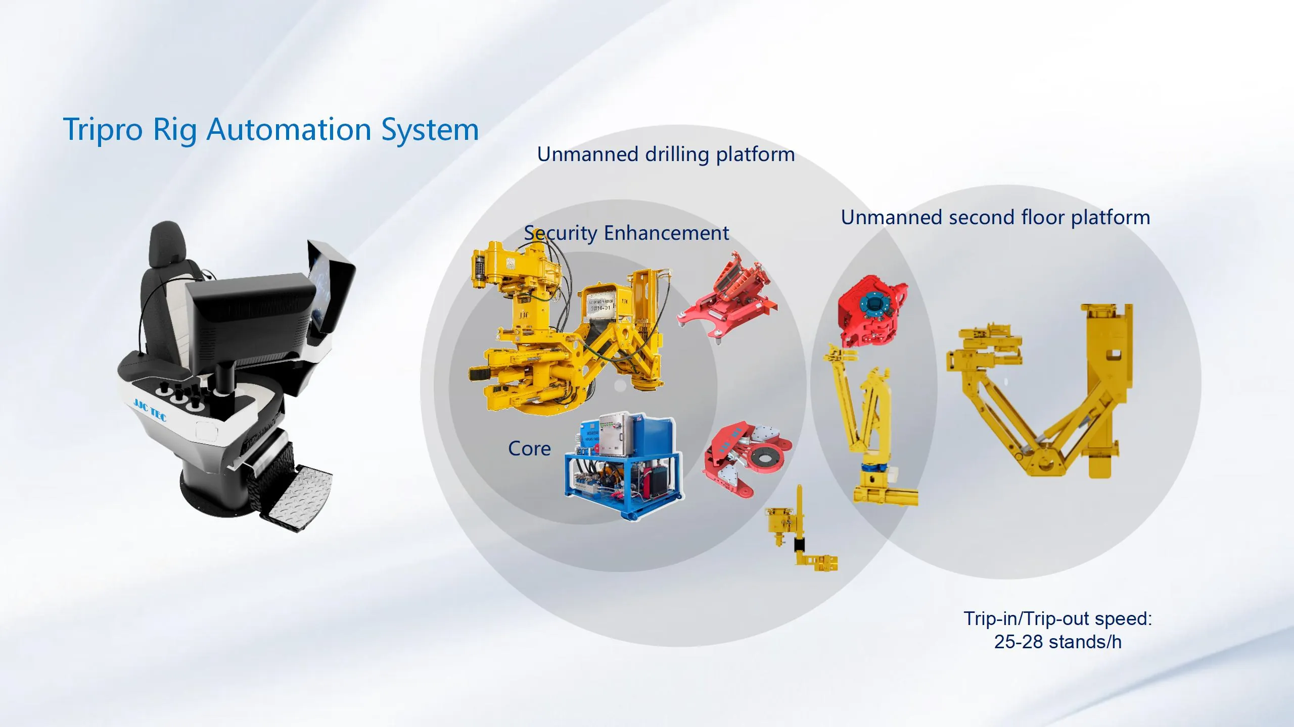 The Tripro® rig automation system is a high-precision and high-efficiency drilling system including advanced equipment and control system. It fully integrates the control of the drilling platform to achieve“one button”operation. Each equipment has unique technical advantages and several patented technologies.